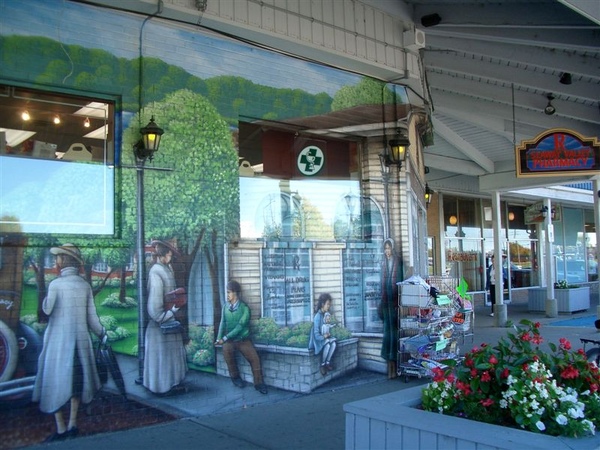 既然是自助旅行,當然要隨停隨吃嚕,隨意在個小交流道下高速公路,意外發現有著可愛壁畫的小藥房,驚喜無所不在