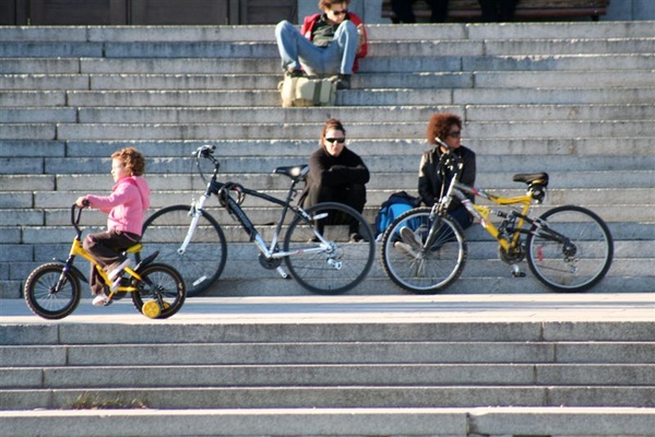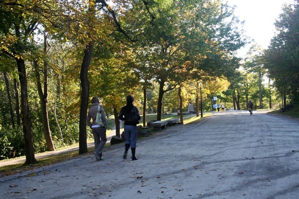 舒服親和的大公園裡, 散步、跑步、直排輪、打氣功、練瑜珈、溜狗、溜小孩,形形色色人們共譜出輕鬆舒適的氛圍,下午三四點悠閒人們這樣多,果然是個適合居住的好地方ㄚ。