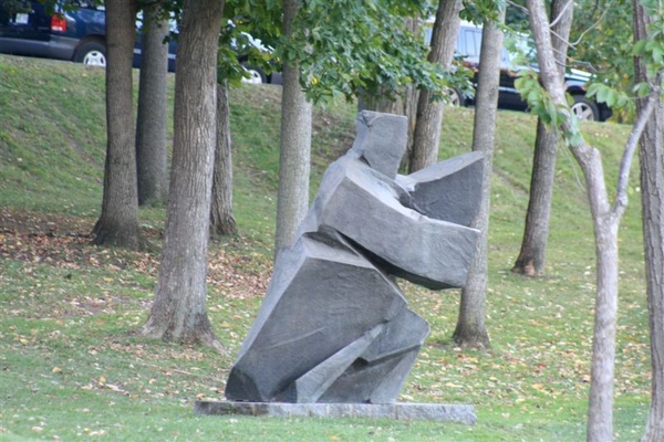 湖畔,裝置著台灣藝術家-朱銘的太極系列雕塑,在光影挪移的樹林間,蹬腿打太極的老朋友,功力似乎增進不少,和金山那開闊藍天相比,多了份難以捉摸的高深。