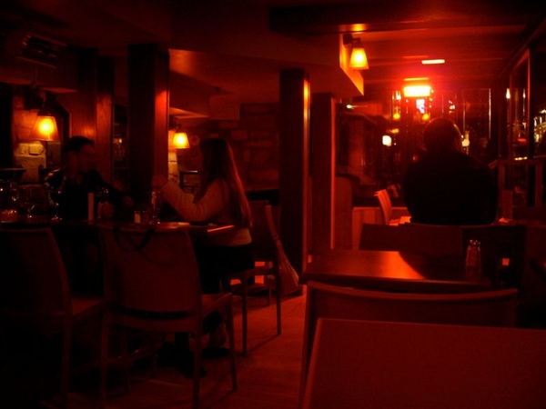 整排的餐廳(其實看來比較像酒館)有點冷清,或許是時間太早,用餐的人並不多,三三兩兩享受著 happy hour,喝個兩杯就離開了,趕下一攤?還是就回家了?不可考。