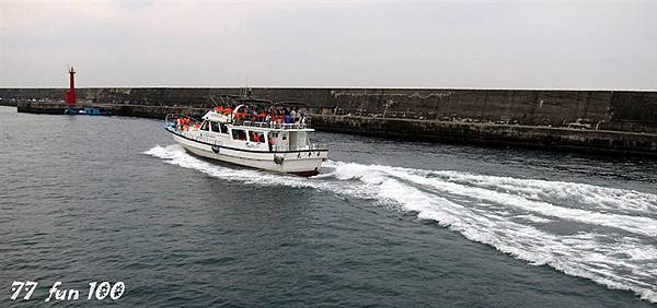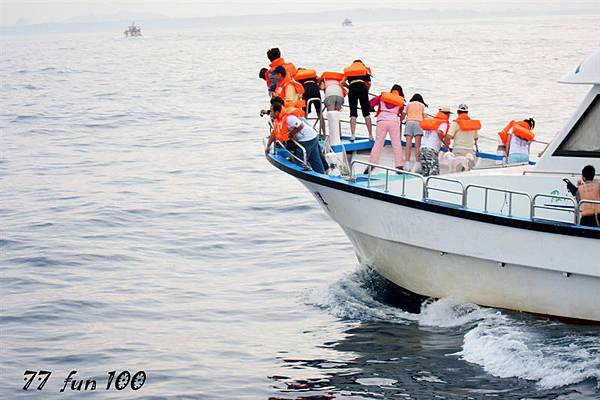 一上船大家就直接往樓上座位衝,陰霾的天氣讓77用來抵禦艷陽的歐巴桑行頭無用武之地。