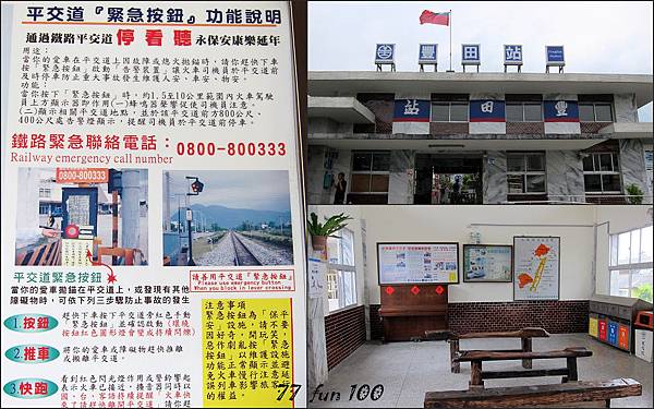 牆上的按鈕推車快跑三部曲,算是東部鐵道的特色警語,畢竟平交道在繁忙西部和北部已不太常見