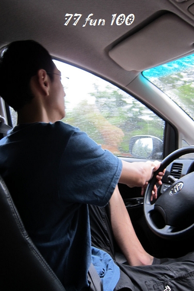 出發一個半小時候,下車舒展筋骨兼解放,喝著飲料欣賞著便利商店的停車場和陰霾的天氣.... >''<